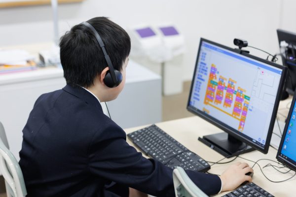 一人ひとりの興味をもとに、「調べる」「まとめる」「伝える」ことを積み重ね、情報活用能力を高め、楽しみながらプログラミング的思考を育てます。タッチタイピングスキルを習得させ、福祉体験学習をもとに、相手の立場で考えられる力を養います。