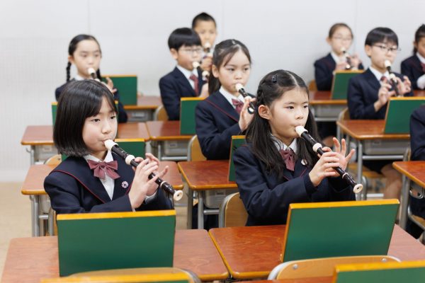 美しく響く歌声を目指し、童謡から合唱曲、英語やドイツ語の歌まで幅広く取り組んでいます。鑑賞ではプロの演奏家を招き、生演奏を手の届くような距離で聴くことにより輿味関心を高めます。