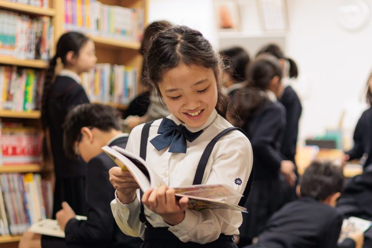 朝や2校時の後に読書タイムを設けています。好きな本を自由に読むことで、読書の楽しさを知り、本を読む習慣を身につけていきます。