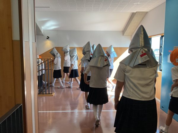 始業式で防災について校長先生、防災担当者から話があった翌日ということもあり、