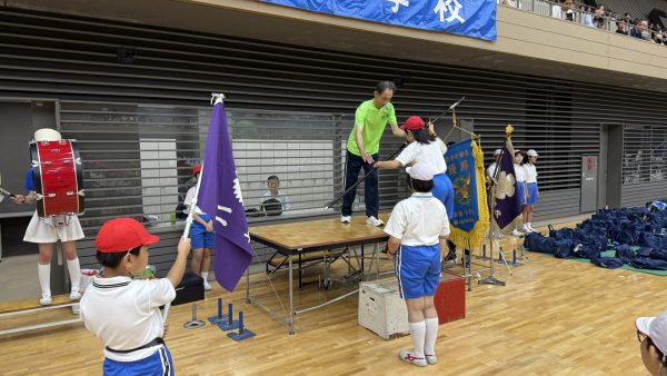 開会式では、6年生の代表児童による校旗入場が厳かに行われました。