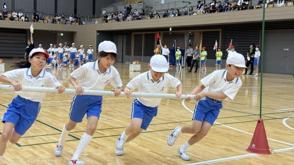 あいにくの天候でしたが、今年度から体育館に変更したこともあり、児童は元気よく競技に挑むことができました。