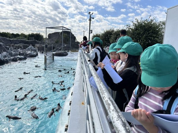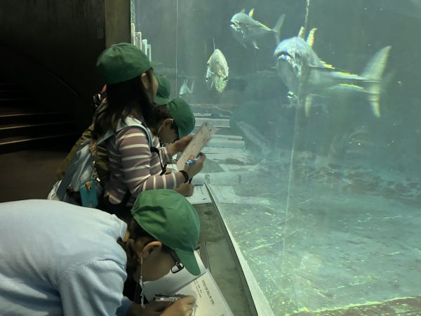 前半は、クラスごとにペンギン・サメ・マグロなどを見て回りました。